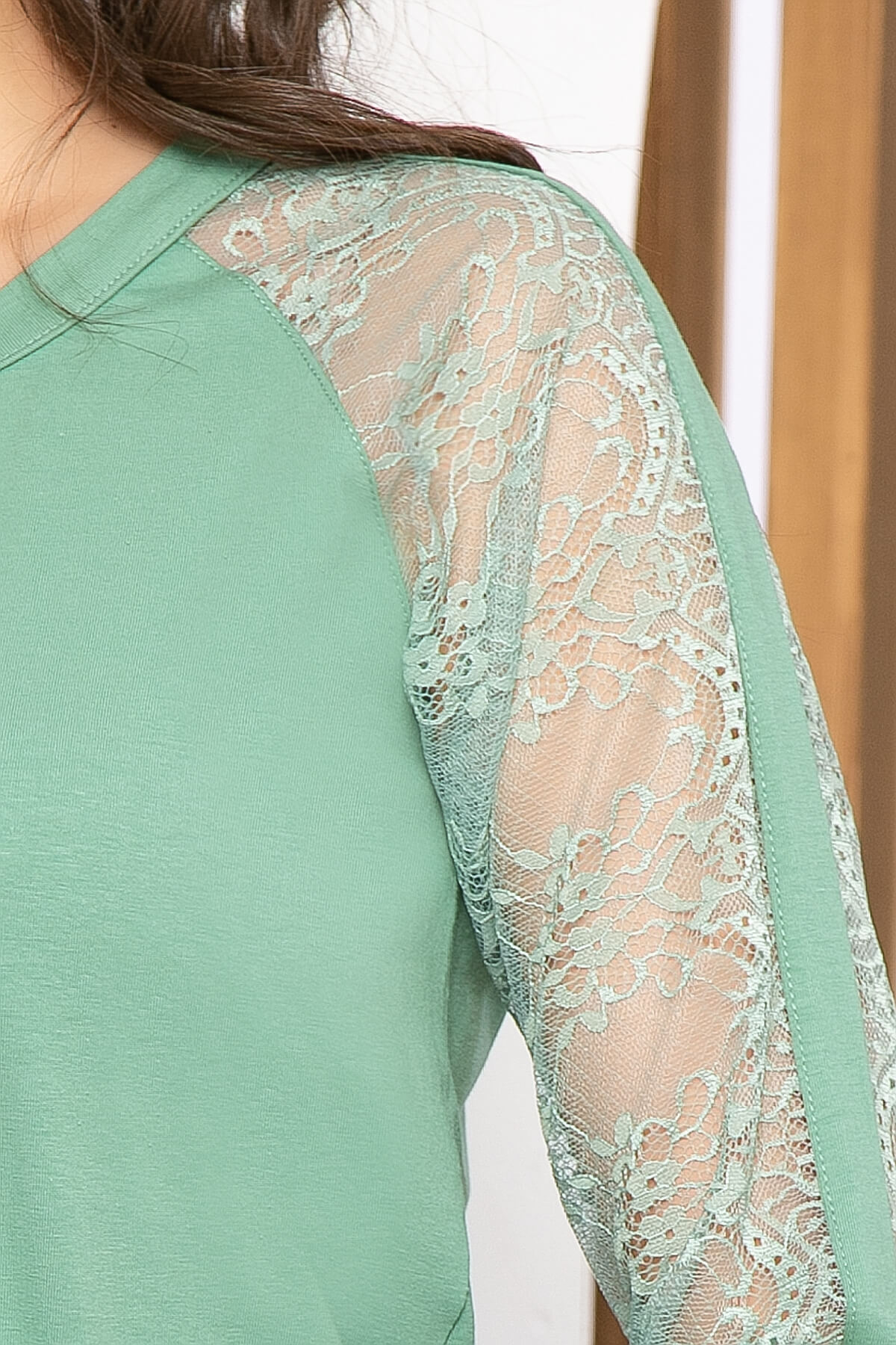 Мягкий джемпер с ажурным рукавом станет фаворитом повседневного весеннего гардероба. Такая модель способна гармонично украсить любой образ. Джемпер на притачном поясе. Рукав-реглан, длинный, украшен гипюровыми вставками по всей длине.